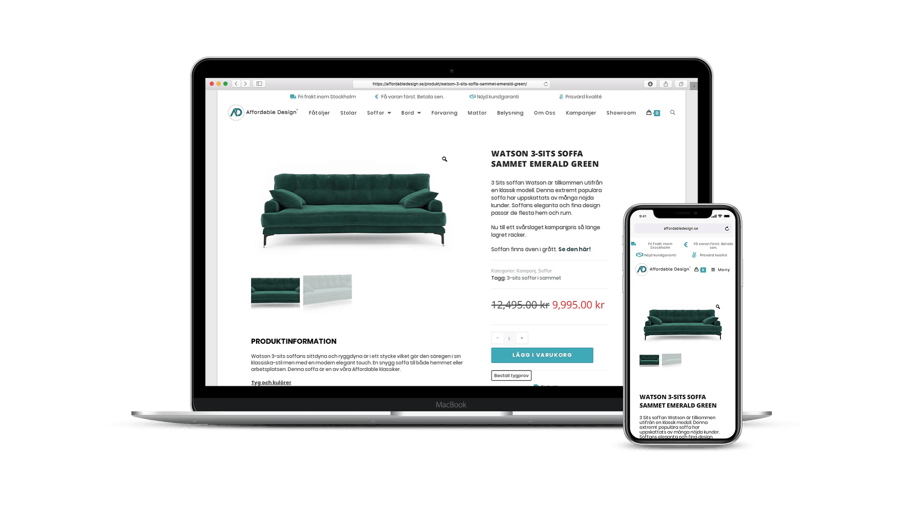 Vi byggde samtliga produktsidor till shopen och integrerade funktioner för att