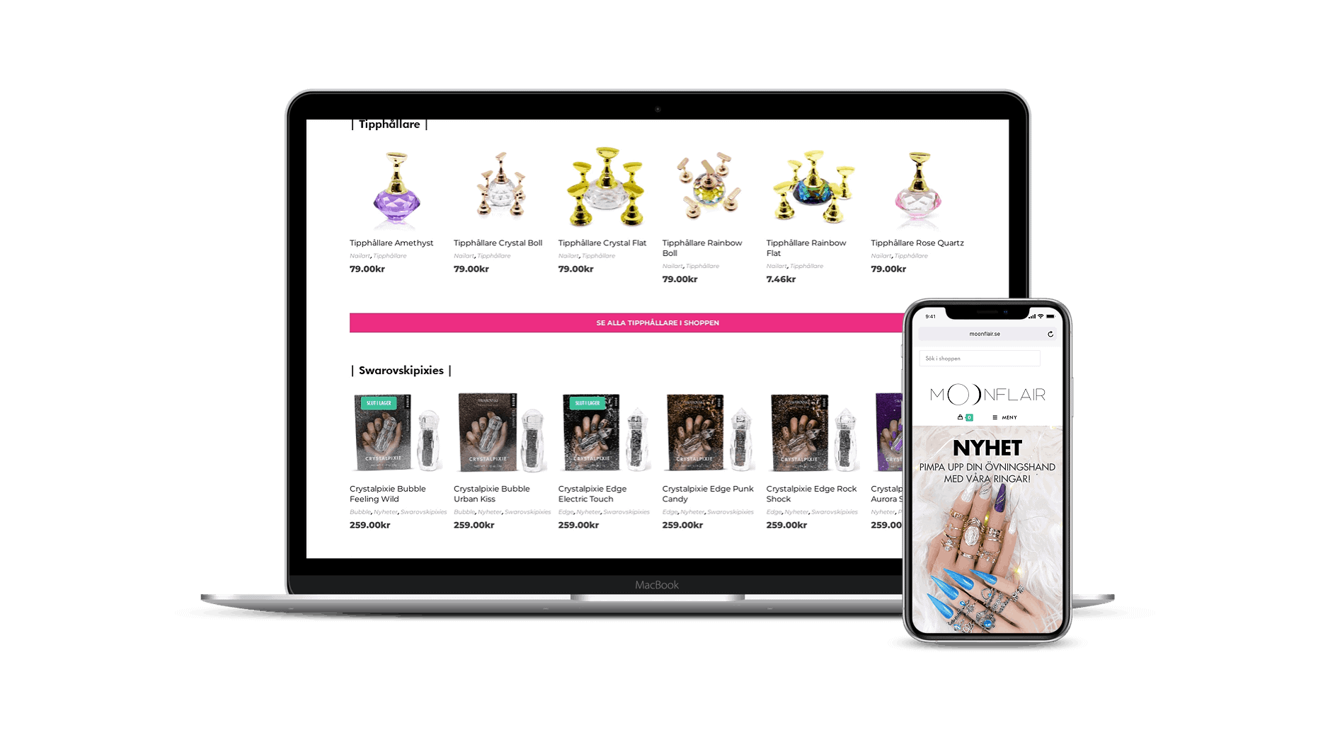 Celina Rydén som är en internationellt mycket känd utbildare och influerare inom nagelvärlden, skulle 2018 starta upp ett nytt företag, Moonflair AB, med en webbshop för nagelprodukter. Hennes vision var att bygga en helt ny typ av shop, optimerad både för mobil och dator, som med ett exklusivt intryck speglade både produkterna och köpupplevelsen. Shopen skulle sälja internationellt till både privatpersoner och företag, varför den måste kunna hantera flera olika språk, valutor, tullsatser och momssatser samt en mängd olika fraktsätt. Även olika betallösningar som t.ex. faktura och kort önskades.
